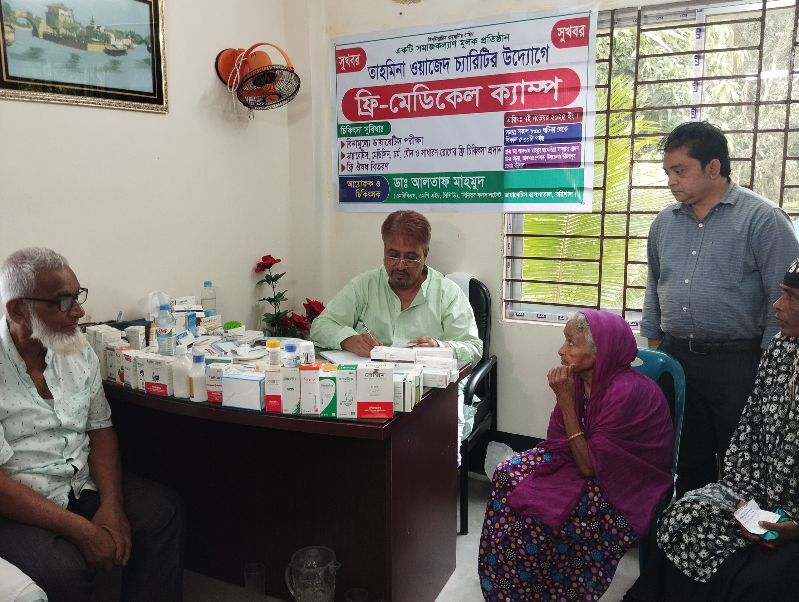 মা- বাবার স্মরণে বিনামূল্যে চিকিৎসা ও সহায়তা দেন উজিরপুরে ডাঃ আলতাফ মাহমুদ।